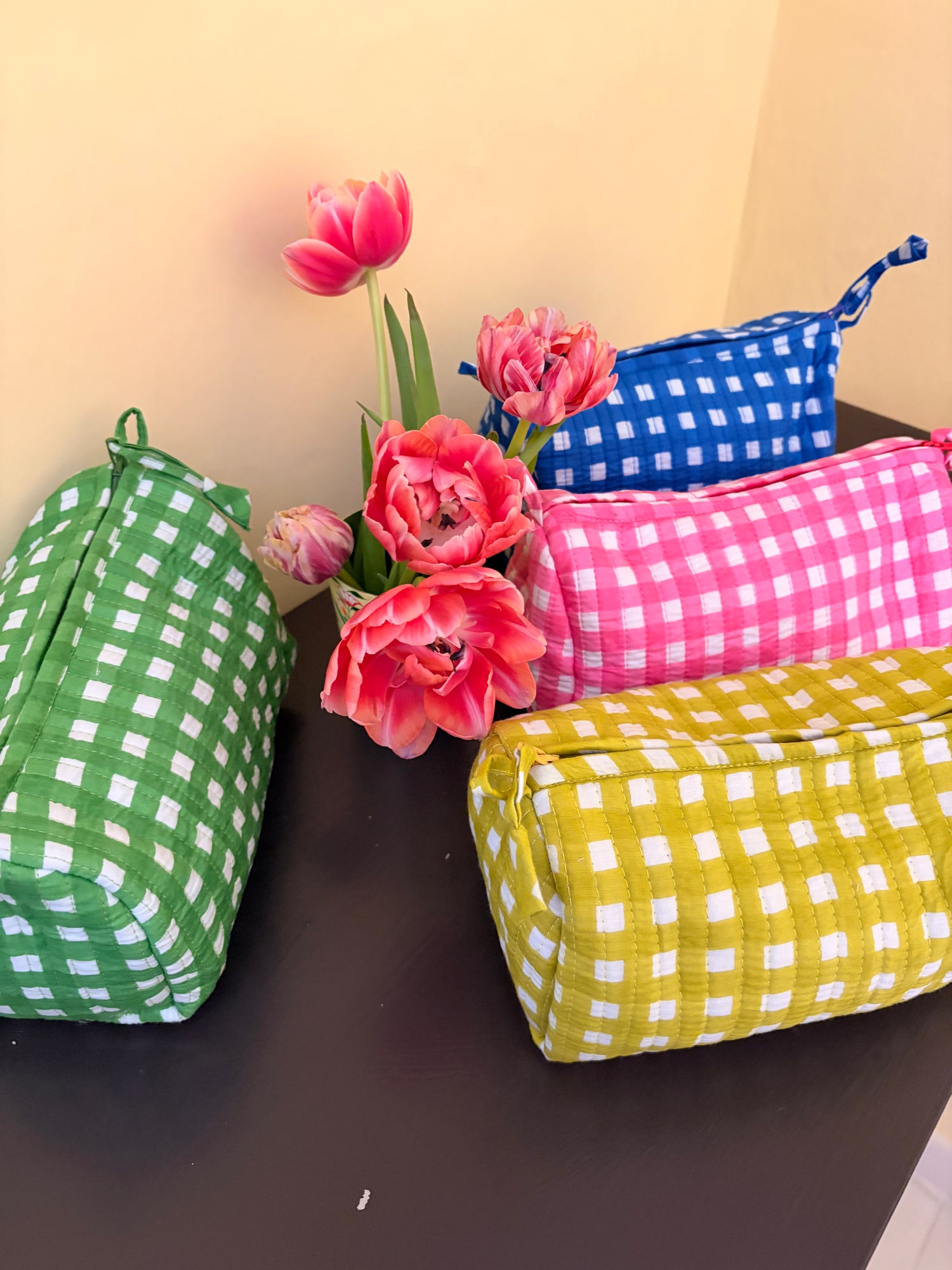 Designed for home and travel, these quilted essentials feature a spill proof interior and bold, vibrant finish.