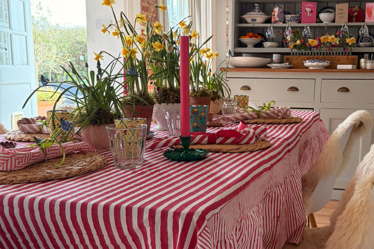 Transform your table with a vibrant tablecloth.