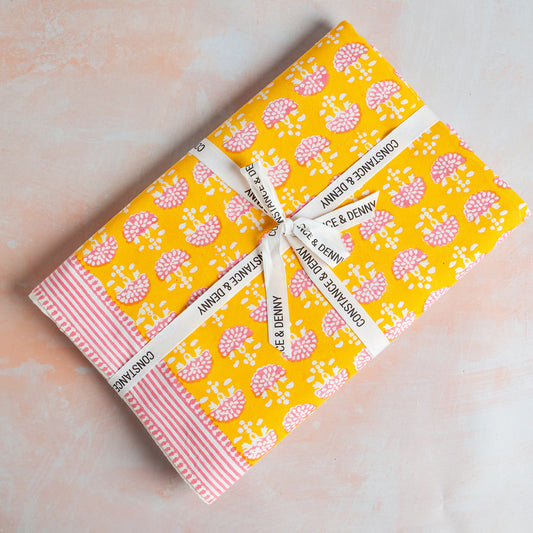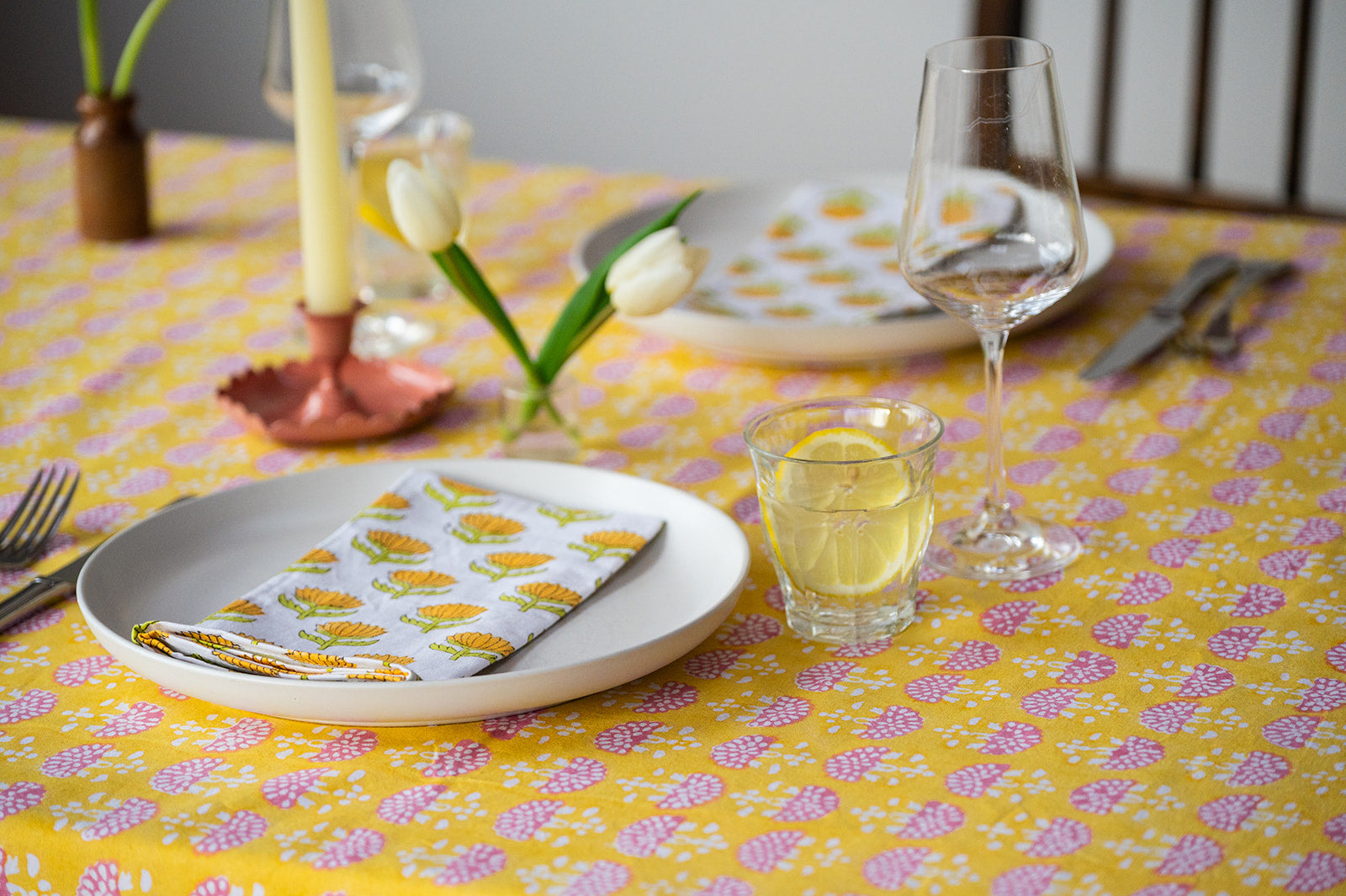 NEW FAN BUTTER YELLOW hand block printed tablecloth