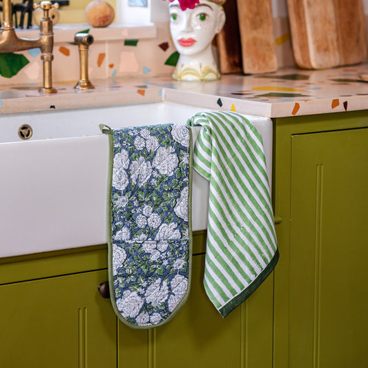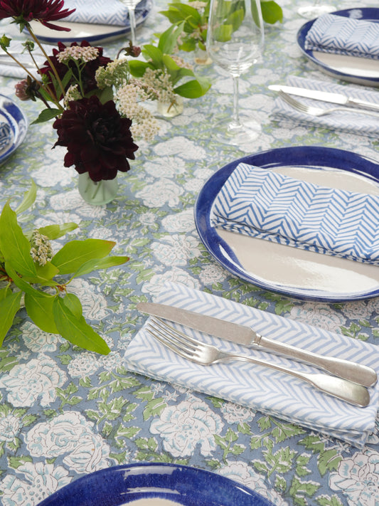NEW MEADOW BABY BLUE hand block printed tablecloth
