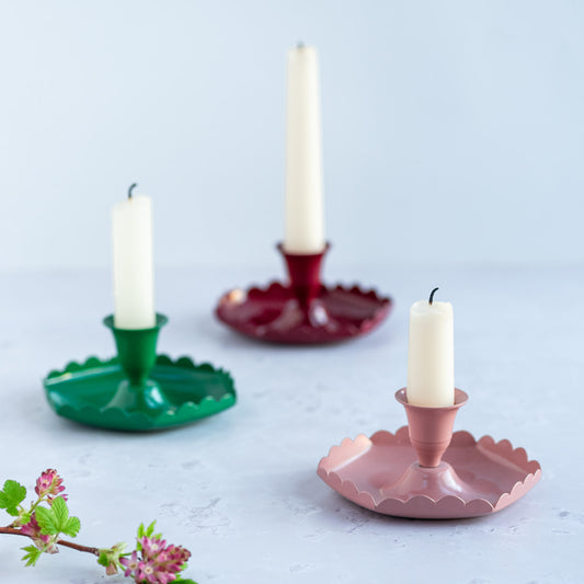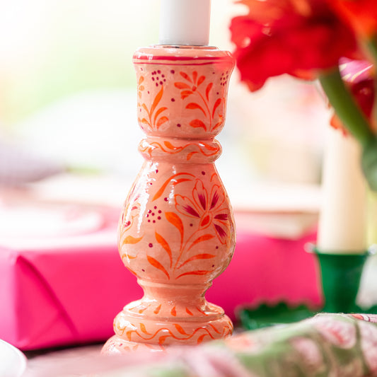 NEW PAIR OF HAND PAINTED CORAL candle holders
