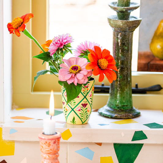NEW PAIR OF HAND-PAINTED CREAM candle holders