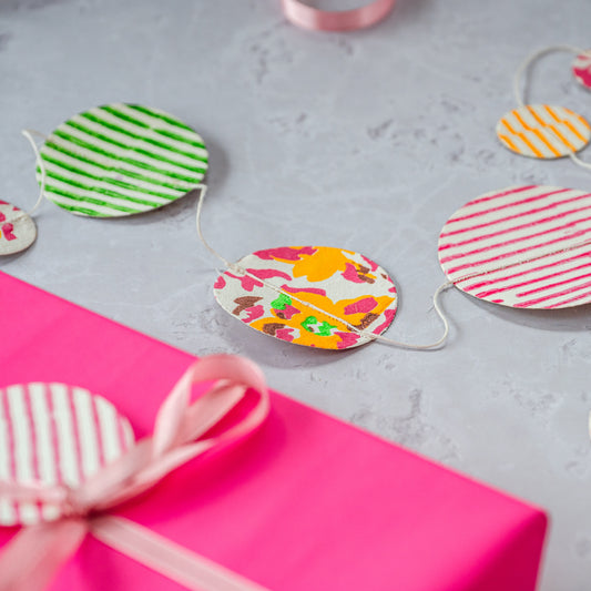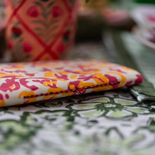 Made by artisans in Jaipur, India. Our notebooks & garlands are made from hand blocked printed cotton and created with hand made, recycled paper.