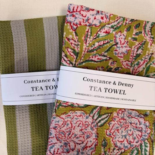WIDE STRIPE OLIVE tea towel