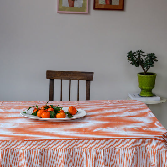 NEW RUFFLE STRIPE APRICOT hand block printed tablecloth